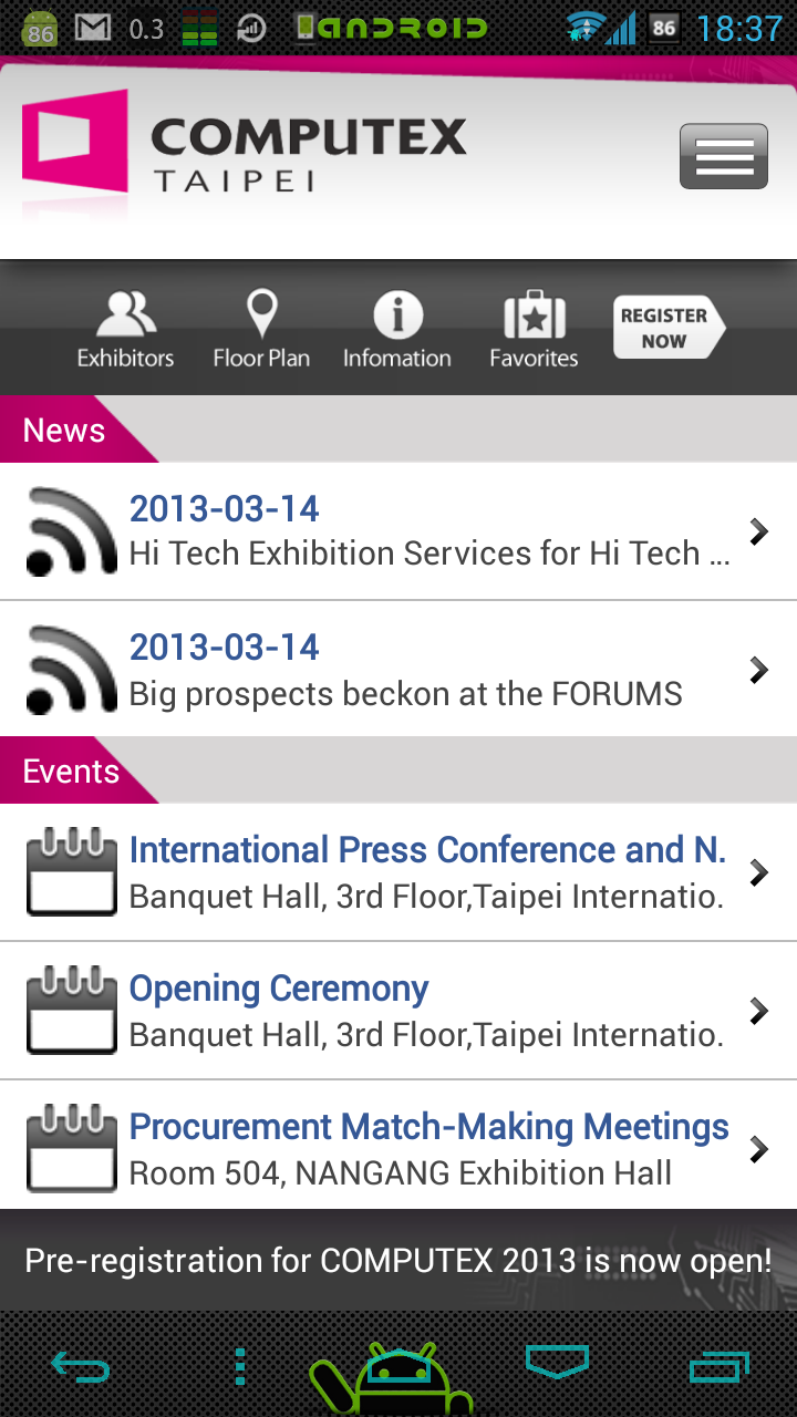 いよいよ、明日からコンピュテックス台北(Computex TAIPEI)2013が始まりますが、AndroidとiPhone用のアプリがあるのを地元の会社の人に教えてもらいました。